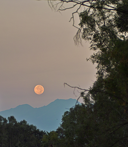 A gusty wind rose in the early afternoon. The sky grew hazy as smoke rolled in from faraway bush fires. The azure heavens were tarnished by a greyish-yellow cloud. The sun seemed to hang heavily in the sky, now a huge orange ball which seemed to glare angrily down at us. The unease grew. It was way too hot, dangerously dry and far too windy.